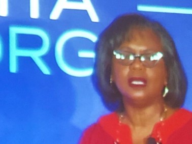 Anita Hill presenting at the Grace Hopper Conference in Houston, Texas